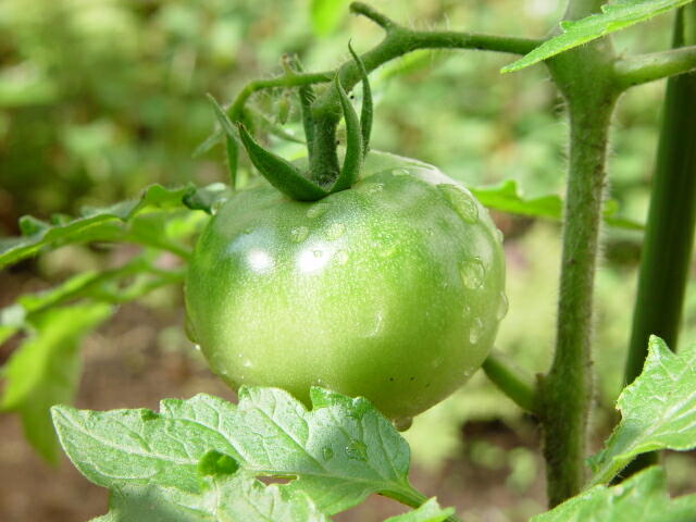 ずいぶんトマトらしい形になってきましたが、まだまだ小さい。
